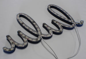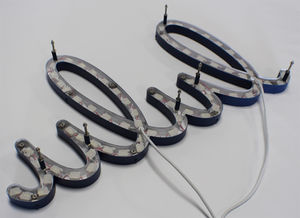 Hier wurde die Einzelbuchstaben als Montageoption ausgewählt. Es ist bisschen komplexer, aber am Ende sieht man nur die Buchstaben ohne Montageschiene oder Rückblende - sehr saubere Optik. Diese Montageoption ist nicht immer anwendbar, besonders nicht im Außenbereich. Wie Sie aus unserem Online-Kalkulator entnehmen können, wäre der Aufpreis für eine Rückblende für so eine kleine Leuchtreklame echt günstig - unter 100 €.